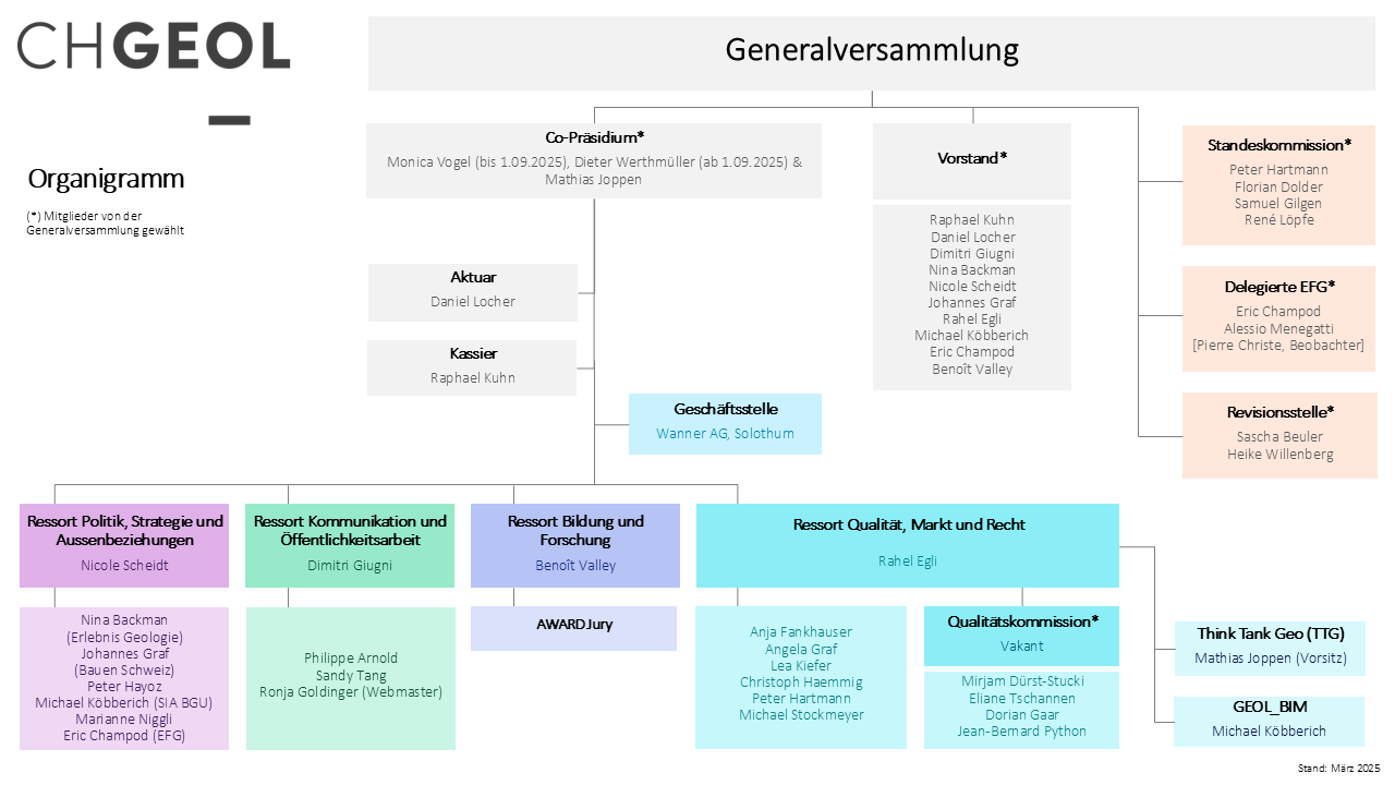 Der Schweizer Geologenverband CHGEOL existiert seit dem Jahre 1998. Im Verband sind aktuell über 500 Geologen aus privaten Büros, Industrie, Hochschulen und Behörden zusammengeschlossen.